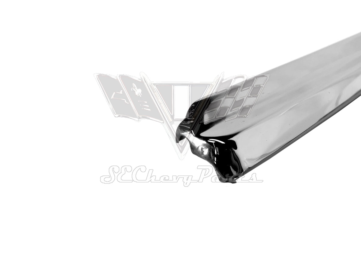 This 1966 Chevy Impala OEM RIGHT/DRIVER'S SIDE Door Vent Reveal Beltline Molding Trim is an original used GM part.  The molding attaches to the front part of the door near the vent window.  The molding is in good used condition but has not been polished.  We can polish the stainless for an additional cost.