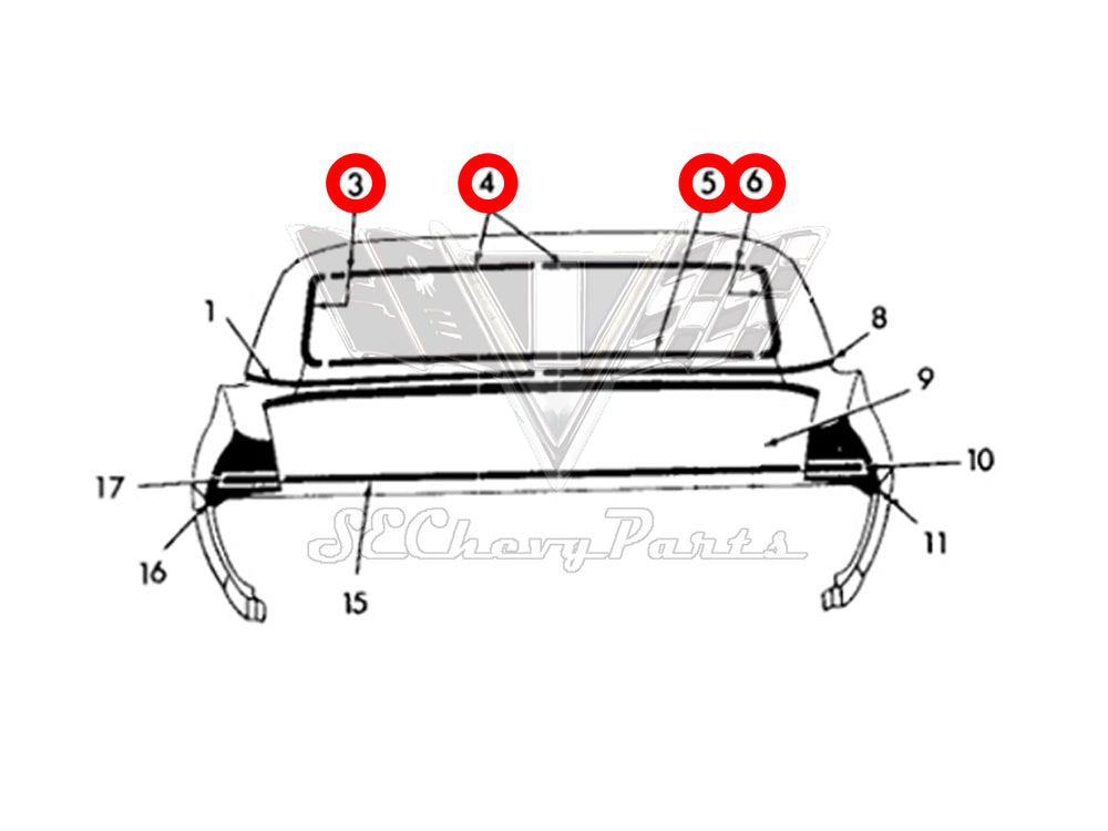 1967-1968 Chevy Impala 2-Door Hardtop Fastback Rear Backglass Reveal Molding Set SHOW