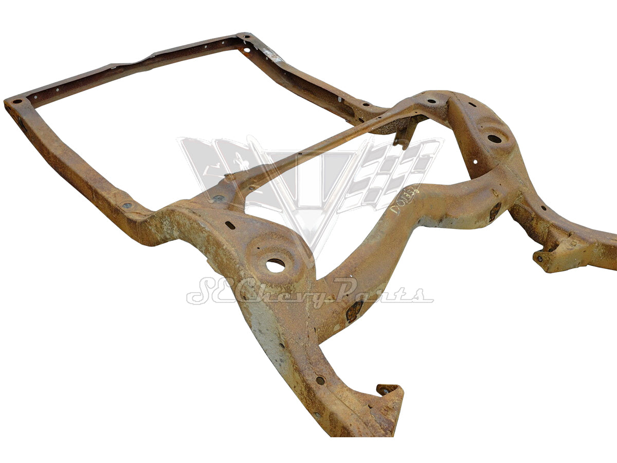 This original 1967-1968 Chevrolet Impala frame is for any hardtop or sedan. We inspect key areas such as the body mount brackets, frame horns, and rear brace to ensure that they are still in good condition. The frame also fits the Bel Air and Biscayne Chevrolet models, but it does not fit a convertible. However, this frame can be modified to fit a convertible. The rear end and front a-arms with spindles can be purchased for an additional cost. The 1967 and 1968 frames are interchangeable with some slight modifications. A few mounts need to be moved but for the most part they are the same.