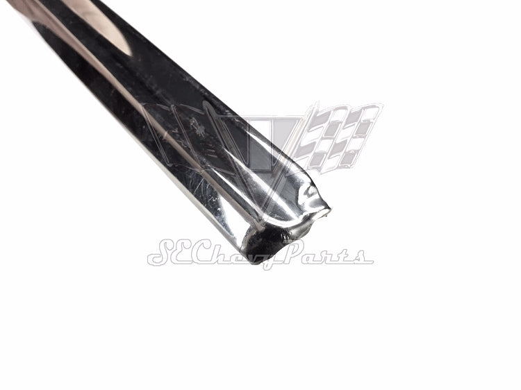 This 1967-1968 Chevy Impala Sedan OEM LEFT/DRIVER'S SIDE Door Vent Reveal Beltline Molding Trim is an original used GM part. The molding attaches to the front part of the door near the vent window. The molding is in good used condition but has not been polished.  We can polish the stainless for an additional cost.