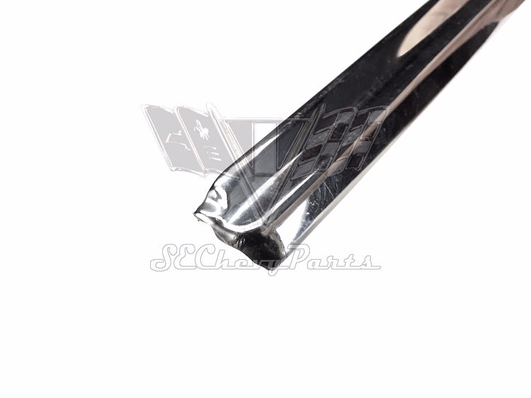 This 1967-1968 Chevy Impala Sedan OEM RIGHT/PASSENGER'S SIDE Door Vent Reveal Beltline Molding Trim is an original used GM part. The molding attaches to the front part of the door near the vent window. The molding is in good used condition but has not been polished.  We can polish the stainless for an additional cost.