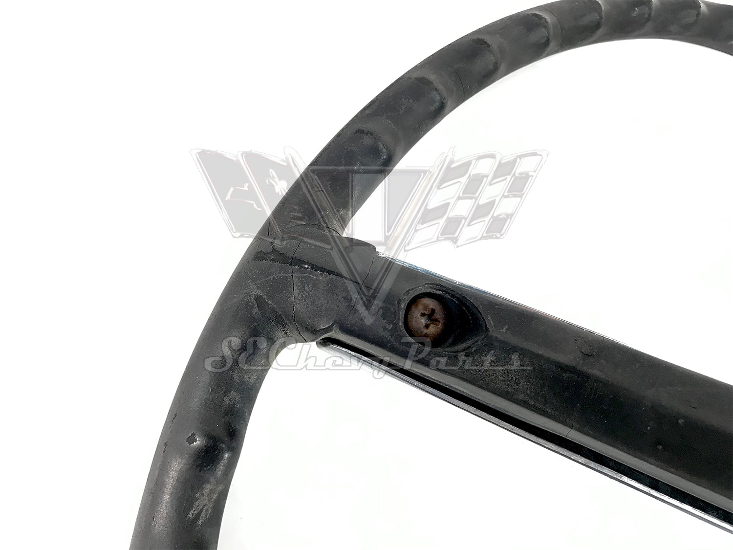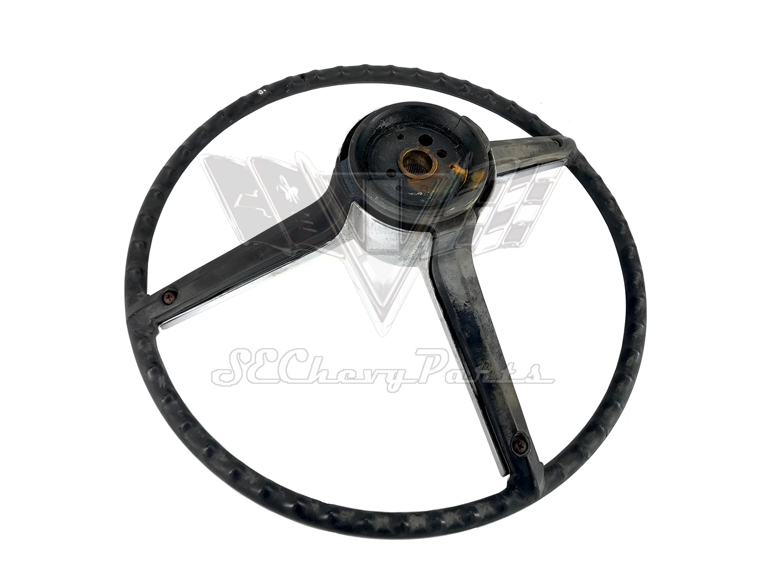 This 1967 Chevy Bel Air Steering Wheel with Horn Ring Bezel is an original used GM part. Very nice used steering wheel with minor defects and cracks (see photos). The horn ring is good driver quality.