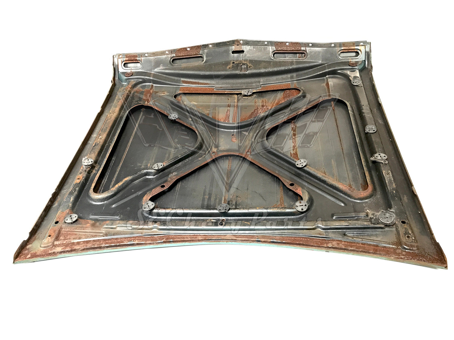 This 1967 Chevy Impala Hood is an original GM used part. The hood photographed is just a sample. Please contact the shop to get specific photos of the hood you will purchase. Fits all models.