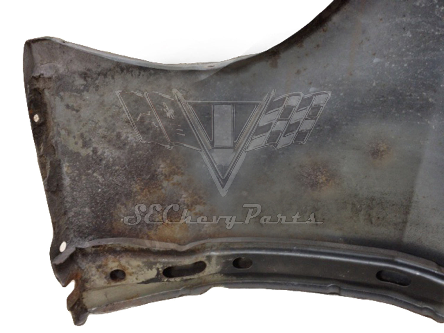 We have a selection of rust free original 1967 Chevrolet front fenders. The inner support brace is intact and the sheetmetal is in good condition there may be some minor scrapes, dents, or pinholes. By rust free we do not mean that it is without surface rust, but it does not have any serious deterioration. Moldings, emblems or any other attachments can be purchased for an additional cost.