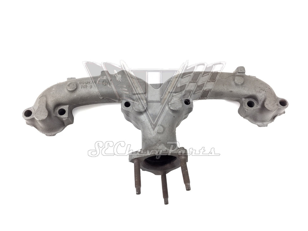 This 1968-1980 Chevy Corvette V8 Small Block 300 327 350 RIGHT Exhaust Manifold #3932461 is an original GM part that is used. Some exhaust manifolds may need new studs. The manifold fits 1969 passenger car 327 235HP; 350 250-300HP; 1969 Corvette 350 300-350HP; 1970 Corvette 350 370HP, 1971 Corvette 350 200-255HP