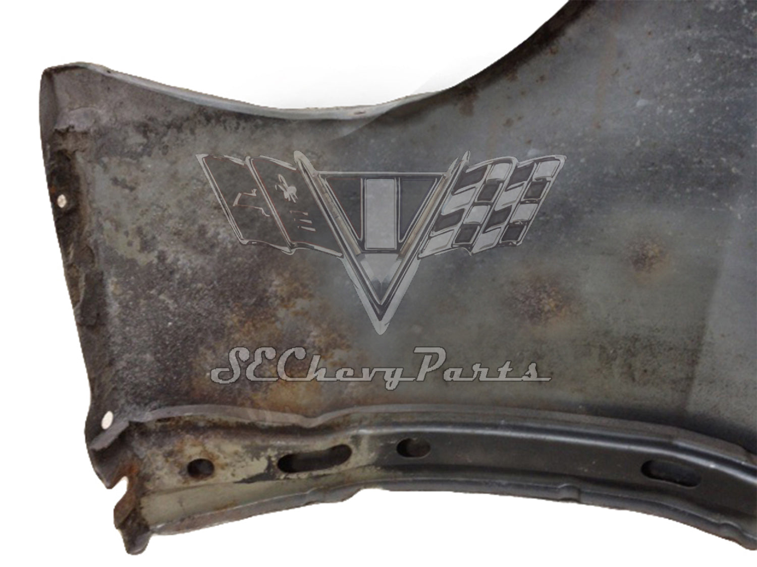 We have a selection of rust free original 1968 Chevrolet front fenders. The inner support brace is intact and the sheetmetal is in good condition there may be some minor scrapes, dents, or pinholes. By rust free we do not mean that it is without surface rust, but it does not have any serious deterioration. Moldings, emblems or any other attachments can be purchased for an additional cost.
