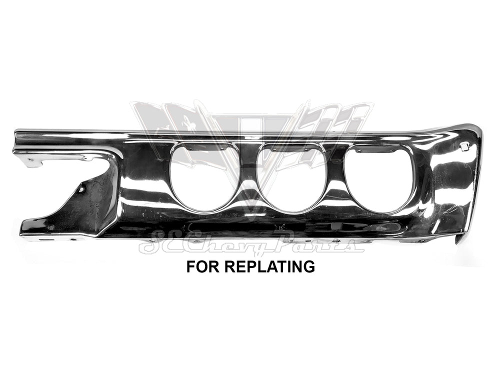 This 1968 Chevy Impala RIGHT Rear Bumper is an original used GM part. This is intended as a core to be re-chromed. Some maybe usable as is but they are being sold primarily as cores.