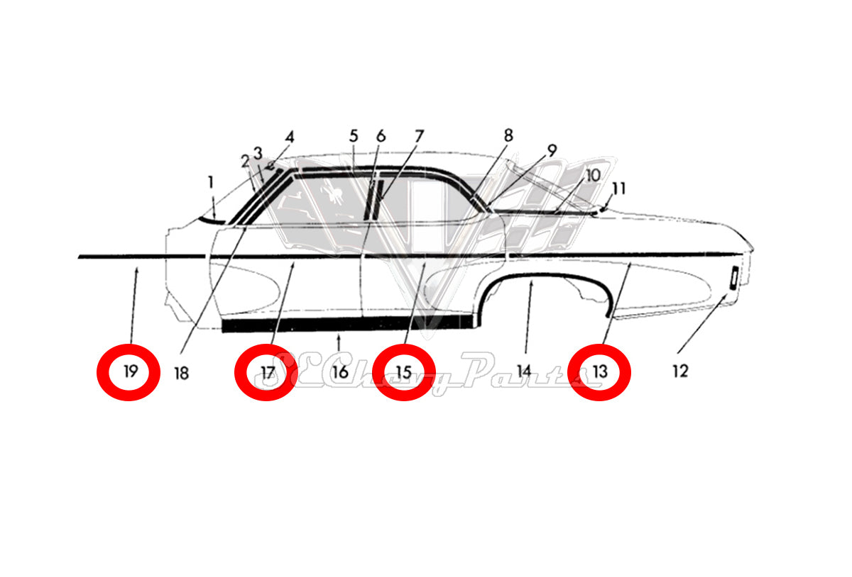 1969 Chevy Bel Air 4-Door Sedan Side Molding Trim Set USED