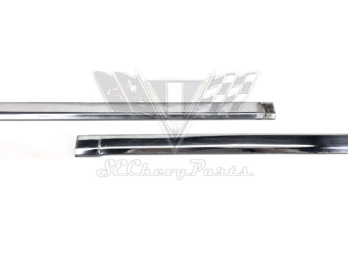 This 1969 Chevy Sedan Rear Backglass Molding Trim Set is an original GM used part.  For an additional fee we can restore the moldings (takes 2-4 weeks).